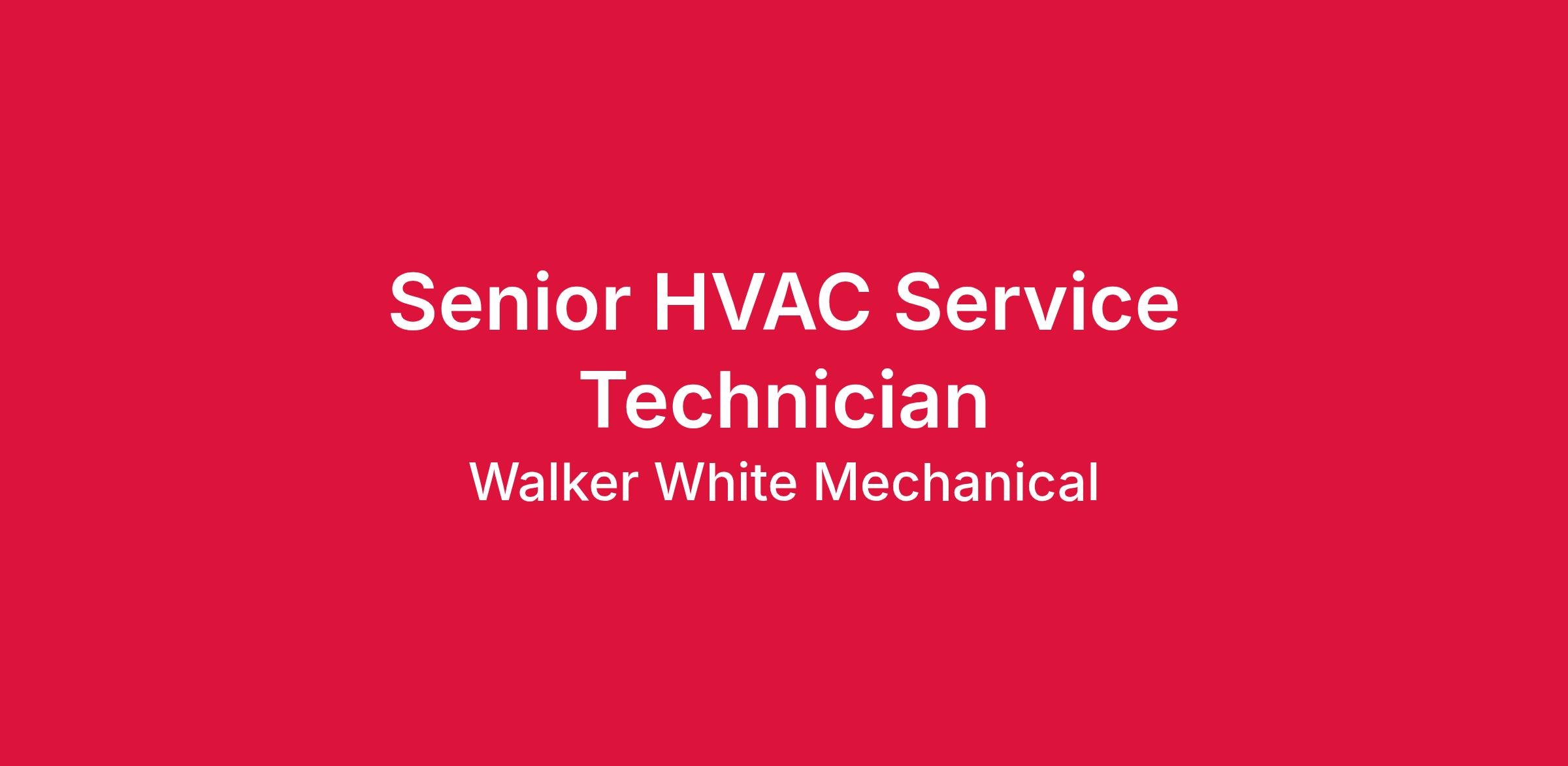 Walker White Mechanical is expanding our commercial service team and is seeking an experienced Senior HVAC Service Technician. If you thrive on solving complex HVAC challenges and want to work with a respected mechanical contractor, this is the opportunity for you.