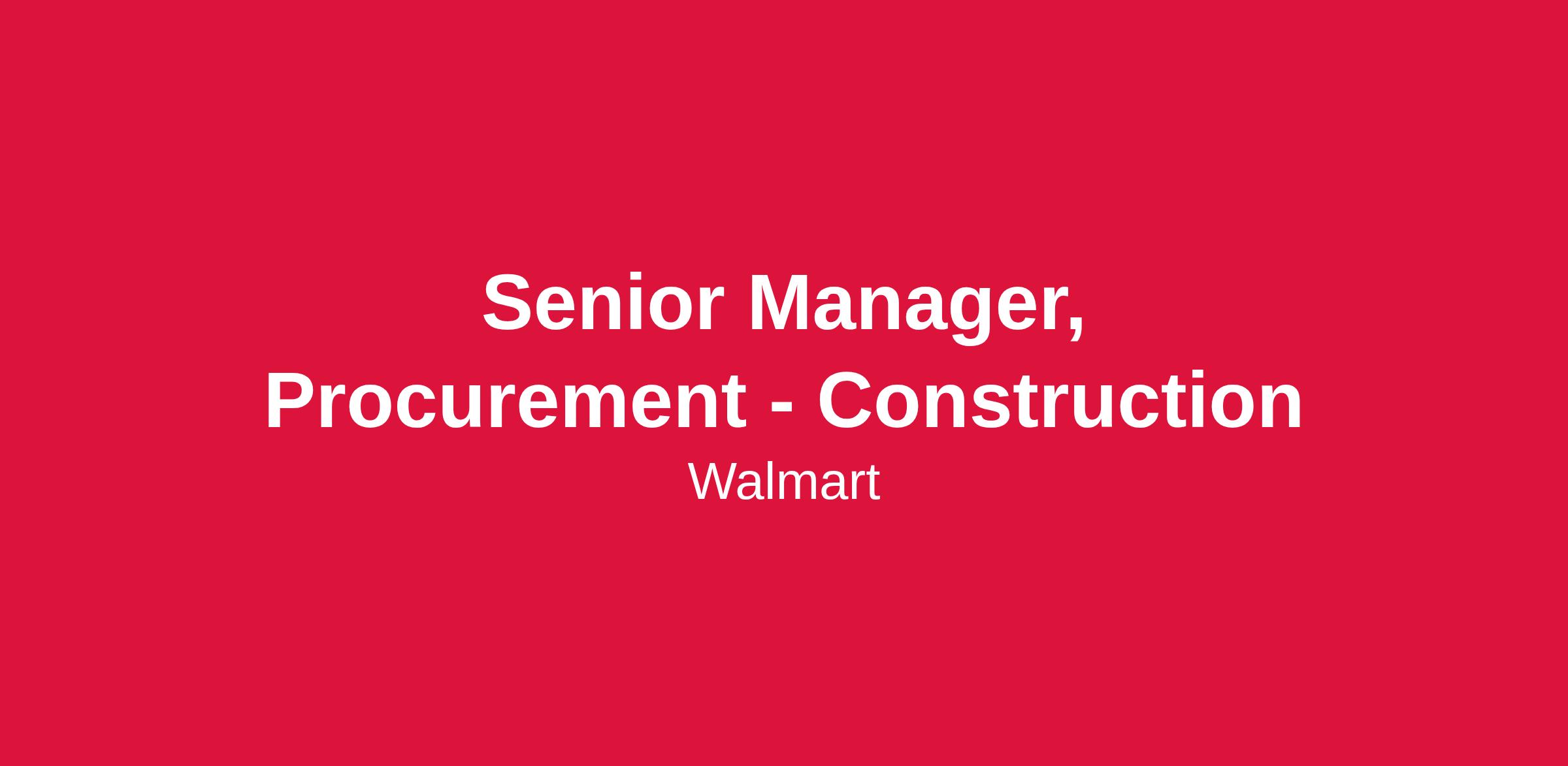Senior Manager, Procurement - Construction