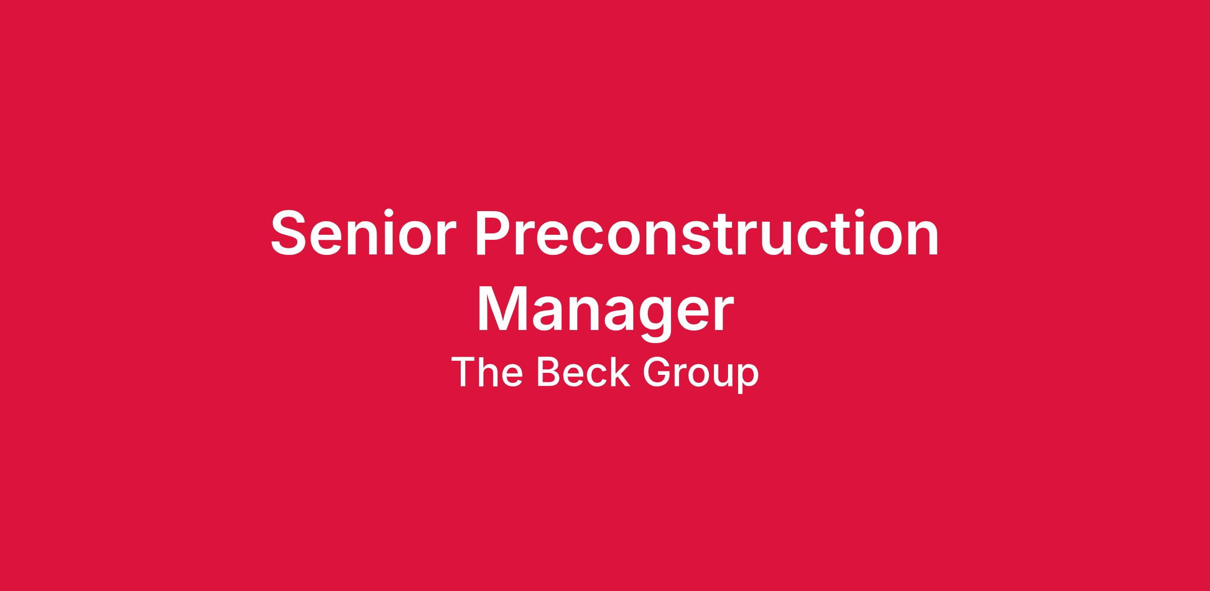 Beck is looking for a qualified Senior Preconstruction and Estimating Manager to join an extraordinary team in. As the Senior Preconstruction and Estimating Manager, you will not only be responsible for the overall direction, completion, and financial outcome of a single project or multiple projects but demonstrate unquestioned skills of reliability and leadership. You will primarily be responsible for leading the development of estimates and bidding process from start to finish to ensure accuracy and completeness of large projects, integrated projects, or projects of a very complex nature ranging in size from $50M-$300M. The position involves the following essential functions: