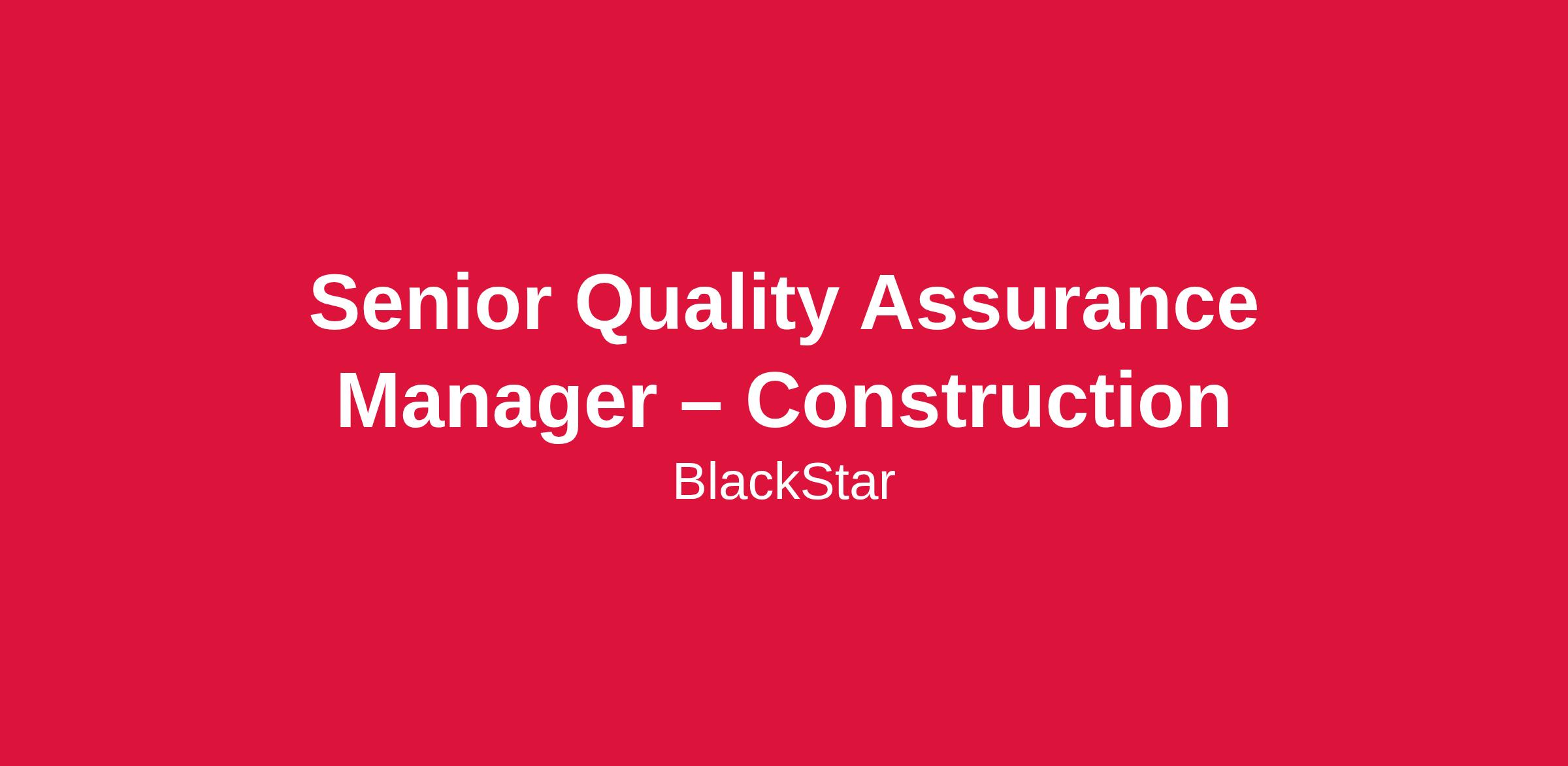 Senior Quality Assurance Manager – Construction | Houston, TX