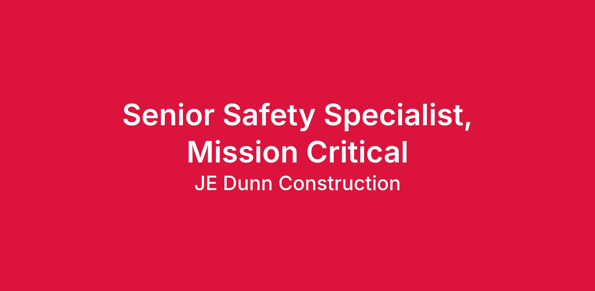 The Senior Safety Specialist will coordinate and implement the field safety program for routine and complex construction projects. This position will be responsible for conducting safety inspections, identifying and documenting abatement of hazardous conditions, writing reports and performing trend analysis. All activities will be performed in support of the strategy, vision and values of JE Dunn.
