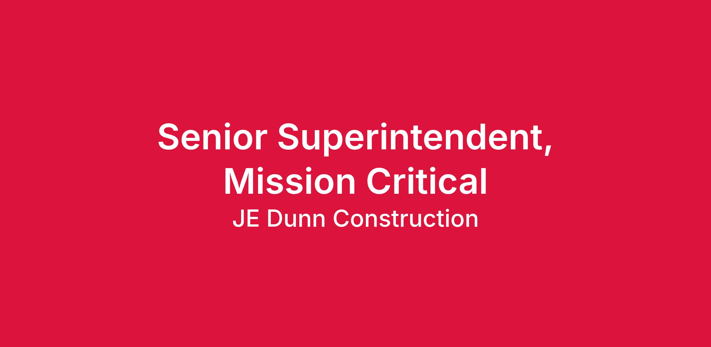 The Senior Superintendent will plan, manage and execute all aspects of significantly complex or multiple projects. This position will be responsible for managing the team, planning all construction sequencing and meeting project goals to achieve timely and profitable completion of each project. All activities will be performed in support of the strategy, vision and values of JE Dunn.
