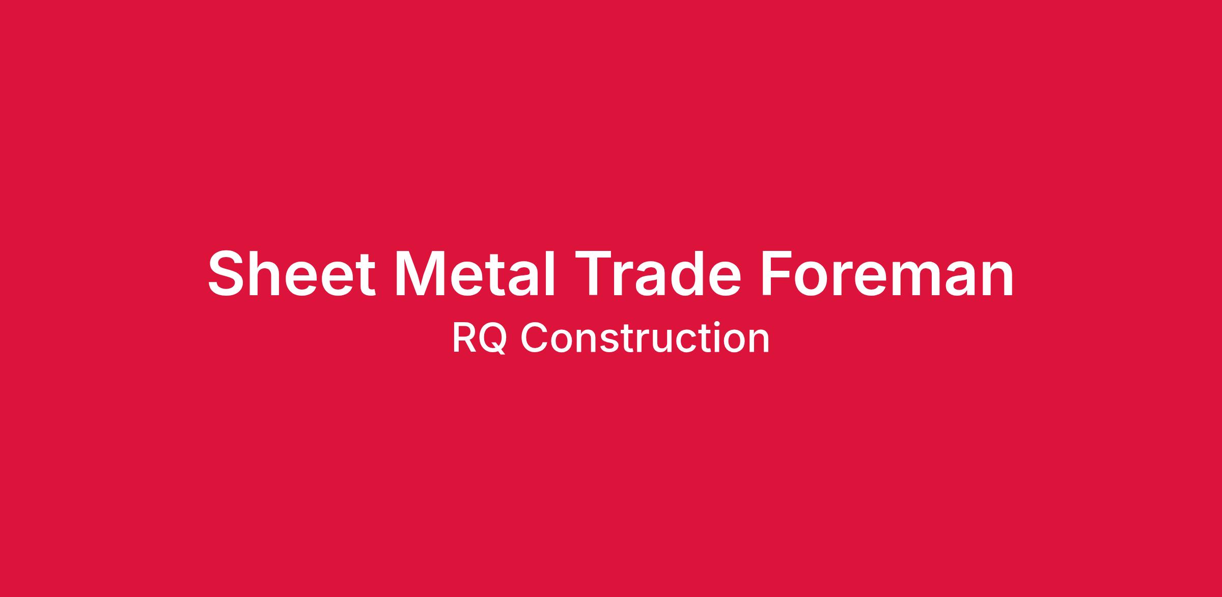 This role is responsible for overseeing daily field operations, directing crews, and coordinating sheet metal activities on active construction sites. The Foreman ensures that work is completed safely, meets quality expectations, stays within budget, and adheres to project schedules. This position plays a key leadership role in upholding RQ's Mission, Vision, Values.