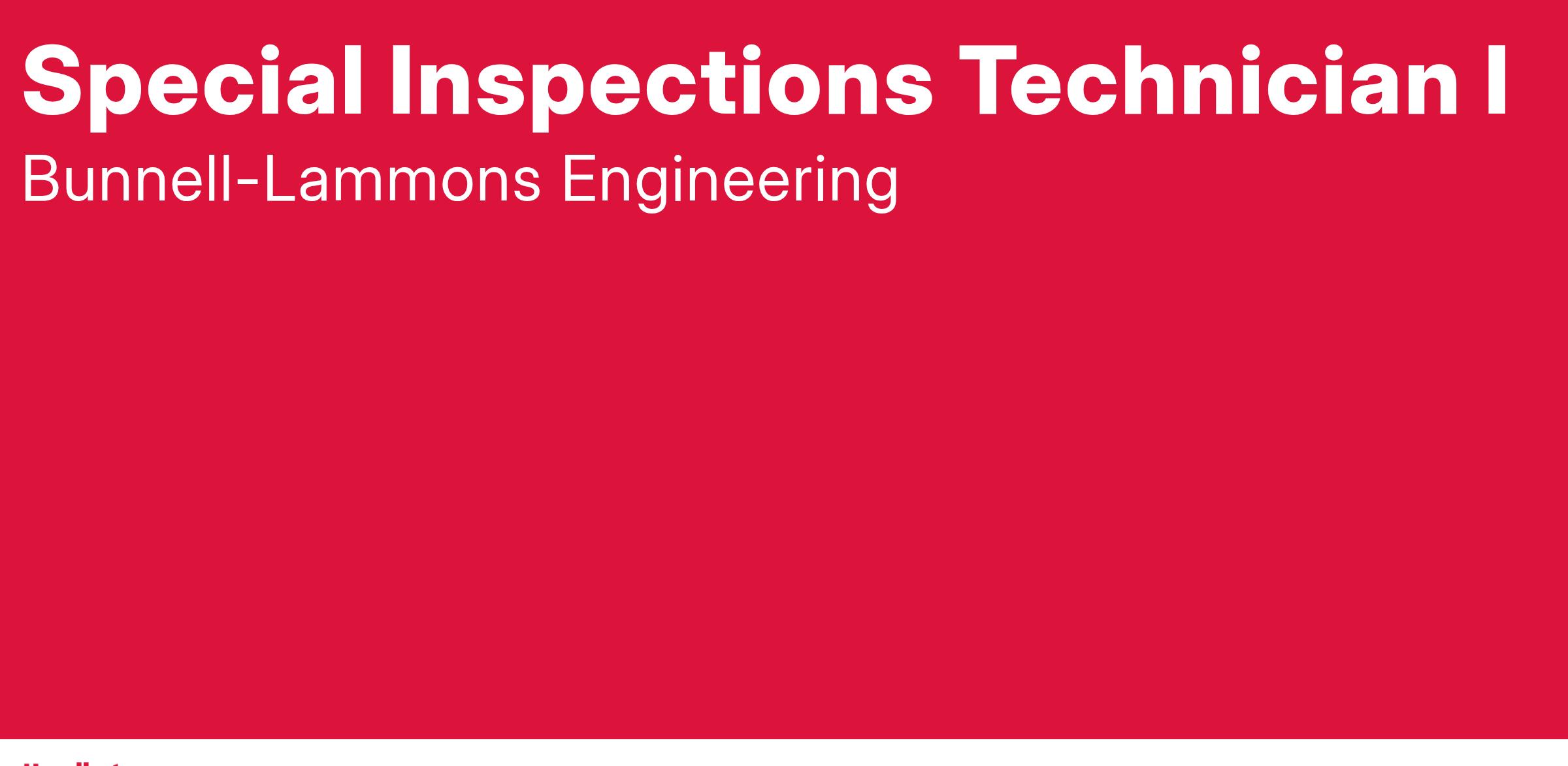 As a Special Inspections Technician (SIT I) for Bunnell-Lammons Engineering, Inc. (BLE), you will be working under the immediate supervision/direction of a registered professional engineer. You will work as a team member alongside site managers and engineers to perform the required inspection or sampling services. Our special Inspections technicians play a critical role in the quality assurance for every construction project no matter how large or small. Special Inspections Technicians actively collect concrete, soil, and other site materials for testing along with the continuous monitoring of general contractor activities, which may include but are not limited to onsite testing and reporting of earthwork and soil construction; foundation/subgrade evaluation; reinforcing steel; concrete placements; masonry as well as asphalt testing. Special Inspections Technicians are also responsible for accurately preparing daily reports for submission to the assigned project engineer. These reports not only include your test results summary, but detailed construction site observations as well.