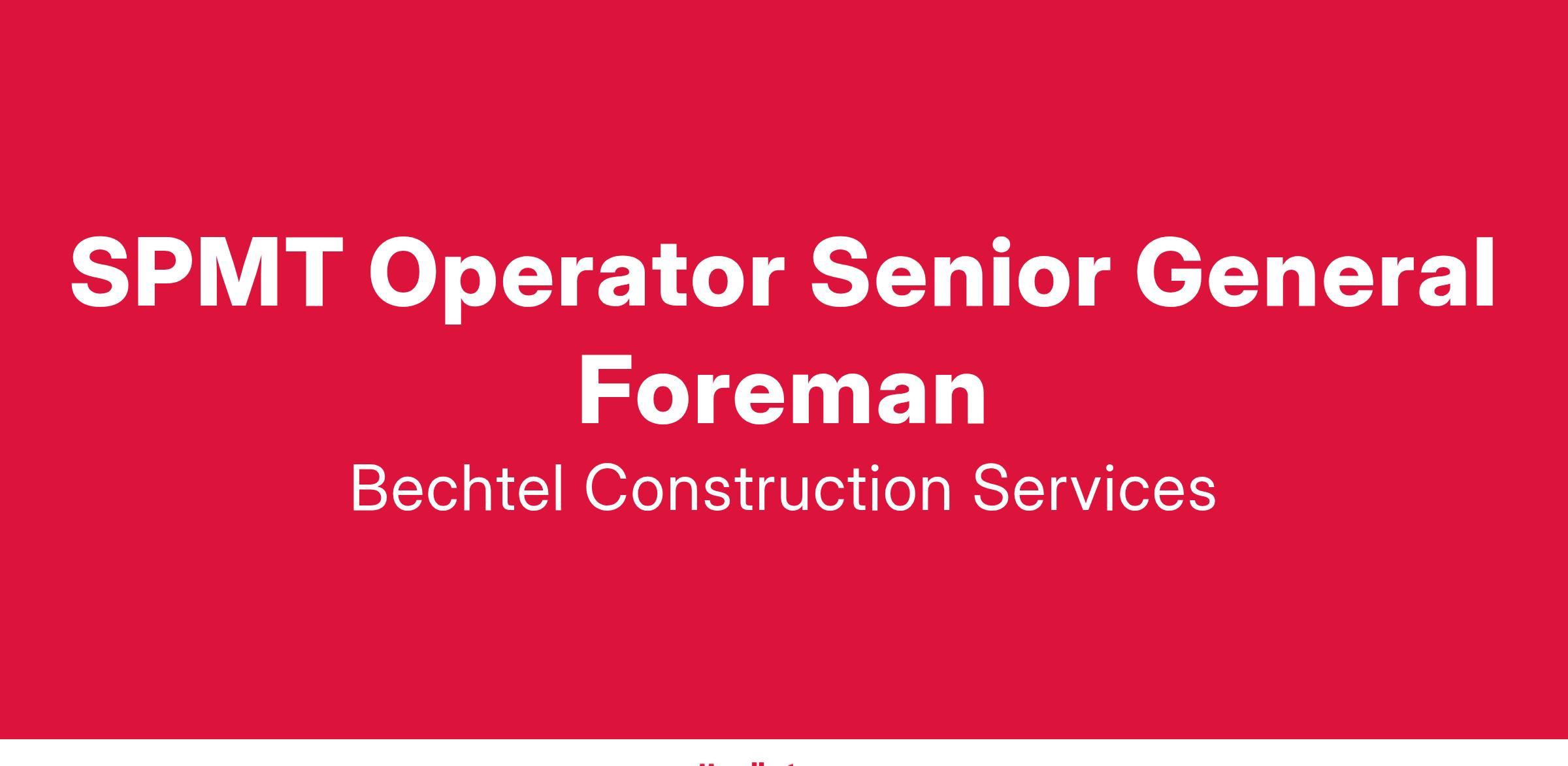 Bechtel Construction Services is an Equal Opportunity Employer. All qualified applicants will receive consideration for employment without regard to race, color, religion, sex, sexual orientation, gender identity and expression, age, national origin, disability, citizenship status (except as authorized by law), protected veteran status, genetic information, and any other characteristic protected by federal, state or local law.