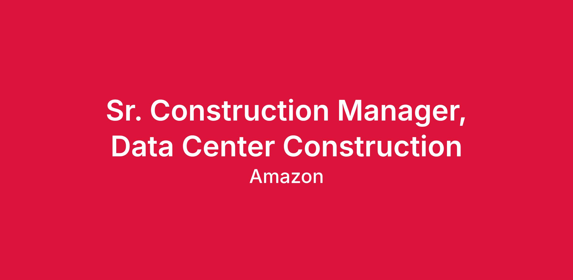 As our Data Center Construction Manager (CM)], you will be a part of a diverse, upbeat, and creative team tasked with solving fascinating problems constructing Amazon Data Centers. Our data centers are industry-leading examples of energy efficient and cost-effective designs.