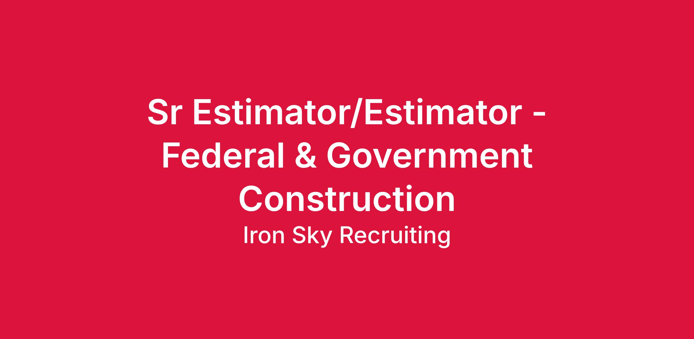 We are seeking an experienced Estimator / Senior Estimator to join a growing construction team specializing in Federal, Military, State, and Local government projects. This role is ideal for a seasoned estimating professional who thrives in a competitive, fast-paced bidding environment and brings strong government contracting experience.