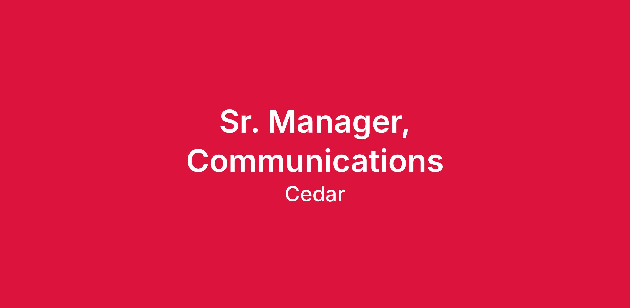 This role sits at the center of Cedar’s external voice. The Senior Manager, Communications is the operational engine behind how we show up in the market, translating our strategy and point of view into clear, compelling execution across media, events, and social. This role sits at the intersection of strategy and execution. You will work closely with the VP of Communications, Content & Events to translate Cedar’s point of view into clear, compelling communications, and you will independently own the day-to-day execution that brings that strategy to life. The scope includes managing our PR agency, driving executive visibility, programming high-impact event content, and fully owning Cedar’s organic social presence.