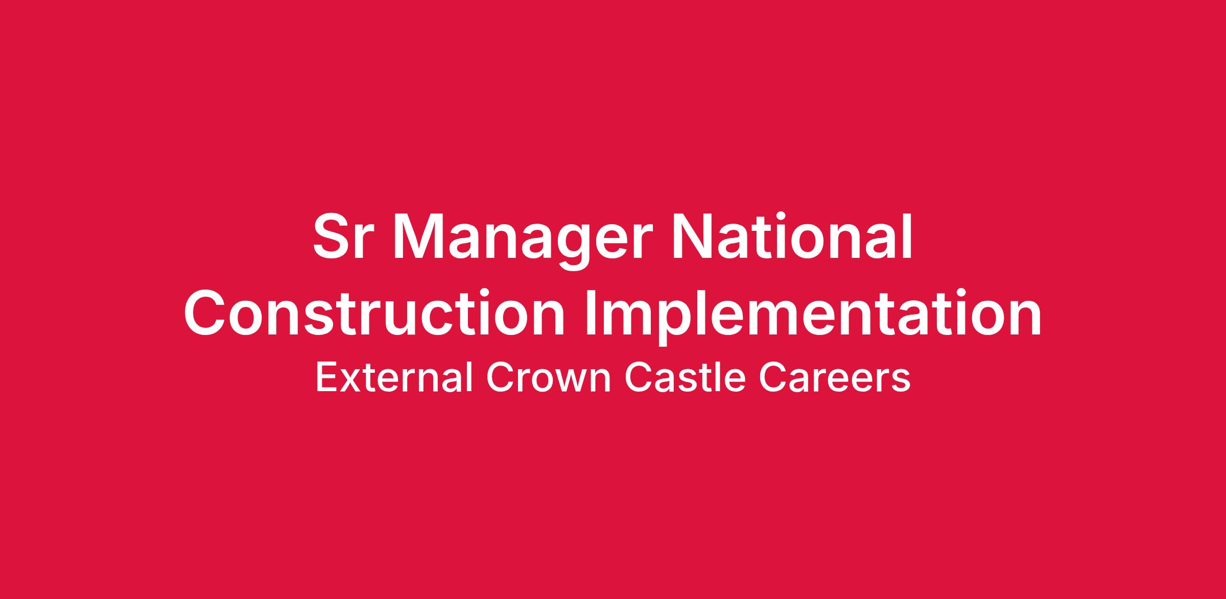 Position Title: Sr Manager National Construction Implementation (M3)