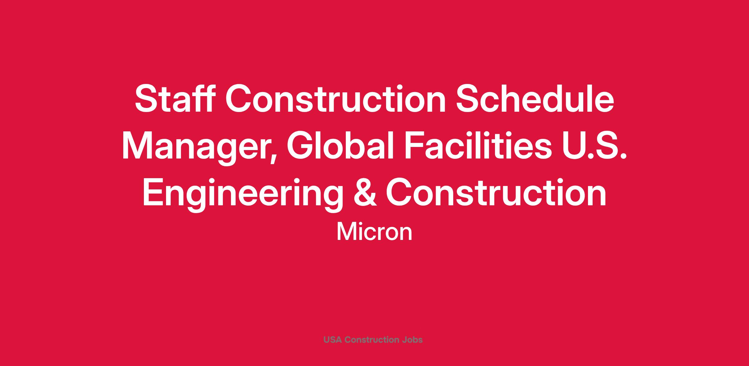 Lead Project Scheduling for Micron’s Global and Regional teams, ensuring timely, budget-conscious, and high-quality delivery of U.S. Greenfield FAB Build and Construction projects.