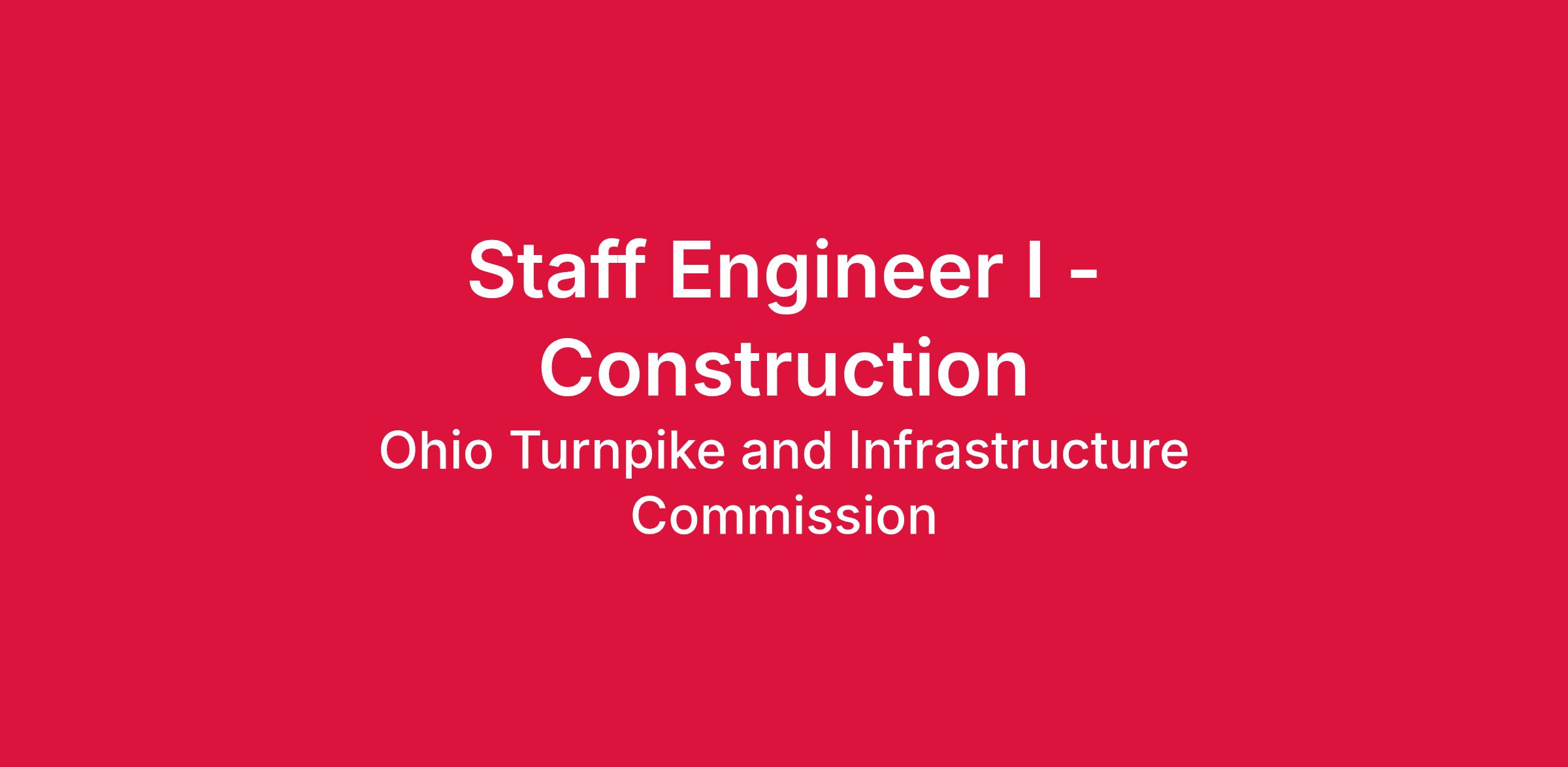 The Ohio Turnpike & Infrastructure Commission is seeking an experienced Staff Engineer I - Construction to work in our Engineering Department at the Administration Building in Berea, OH. Please consider bringing your experience, talents, and goals to one of Northern Ohio’s vital resources and join the future of transportation.