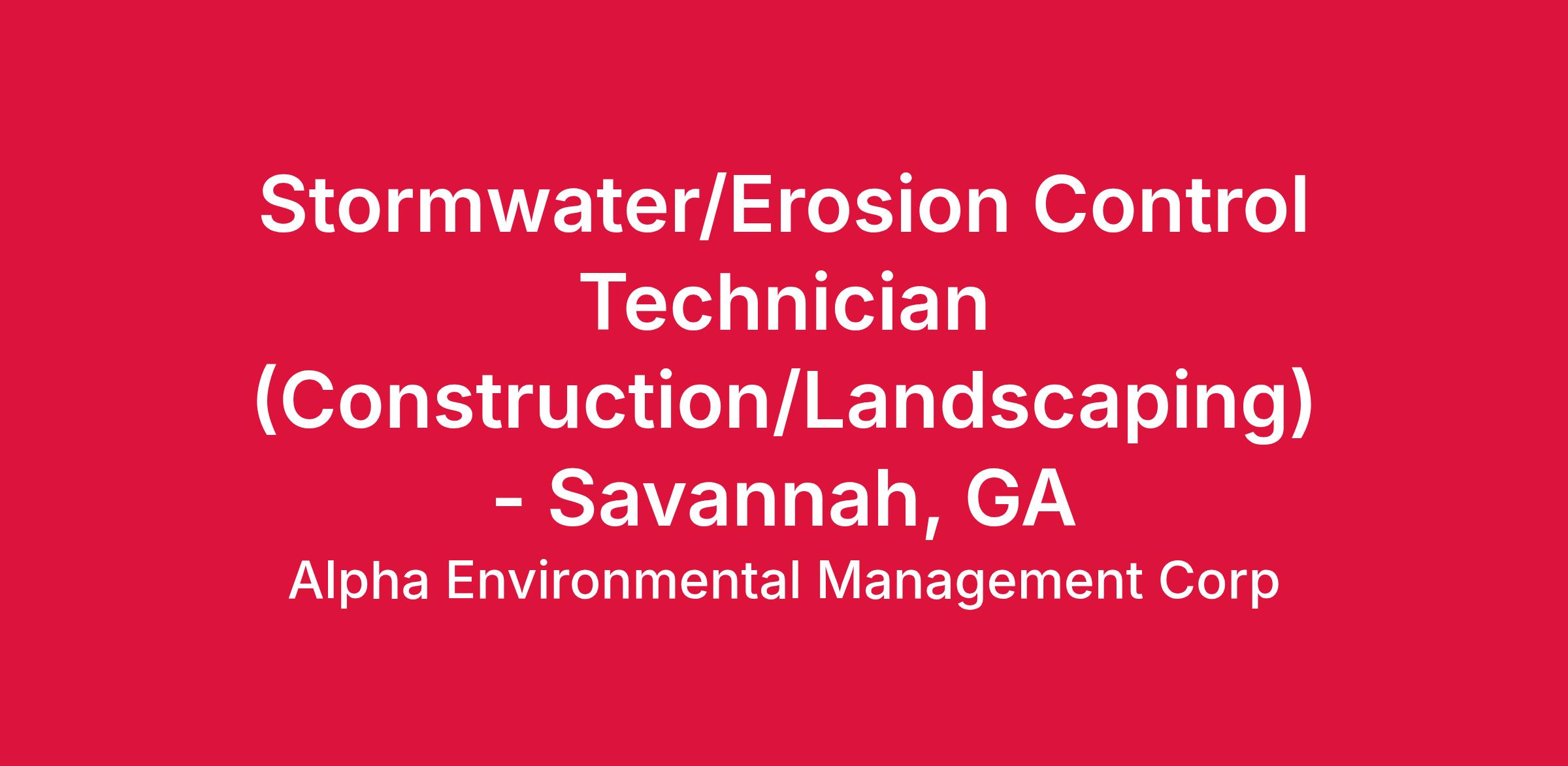 Stormwater/Erosion Control Technician (Construction/Landscaping)