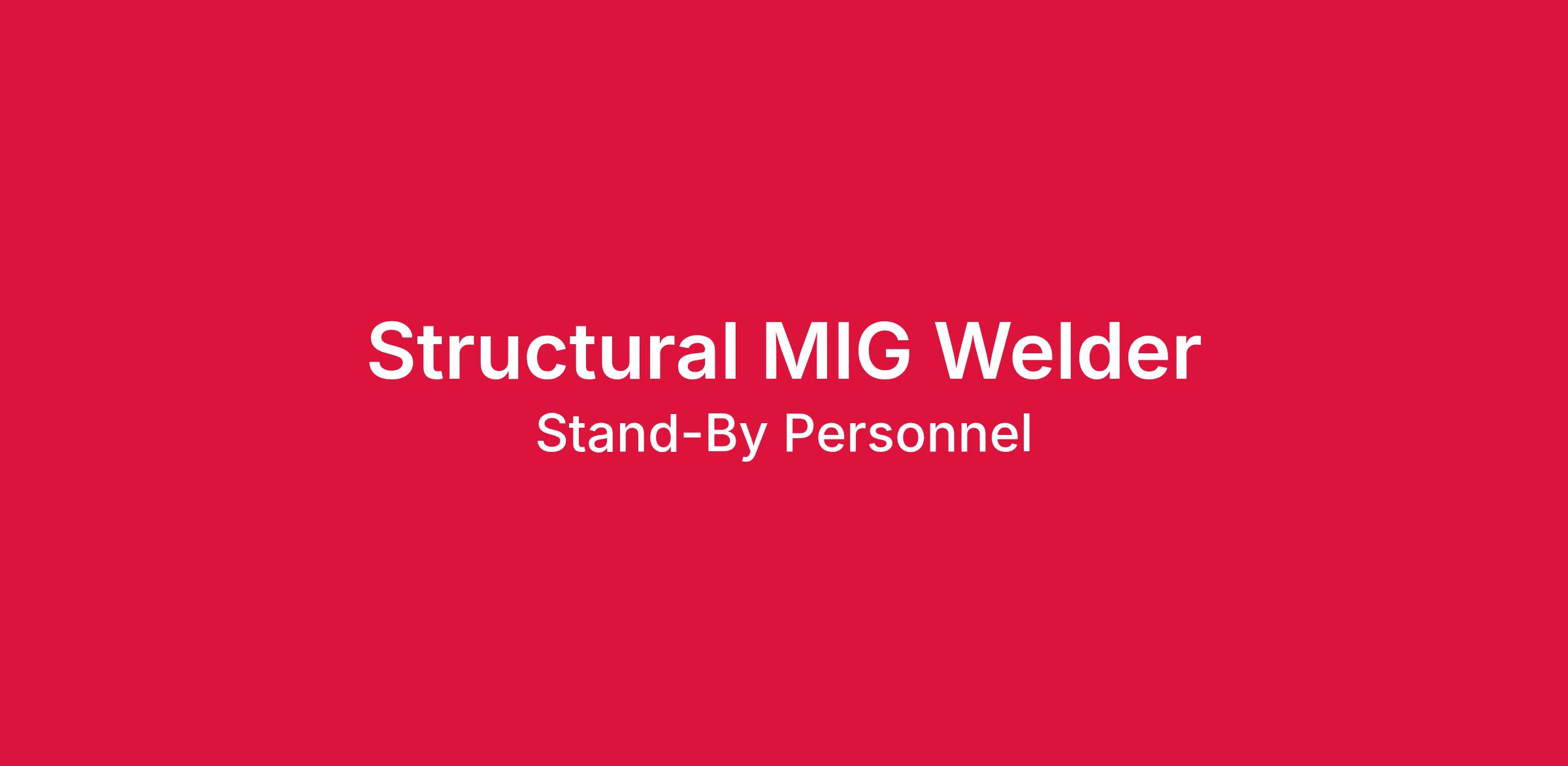 The Structural MIG Welder is responsible for performing high-quality welding on structural steel components used in heavy industrial and structural fabrication projects. This Structural MIG Welder role focuses on 3G position MIG welding while maintaining proper weld penetration, alignment, and structural integrity. The ideal Structural MIG Welder is experienced in structural steel fabrication and capable of working efficiently in a fast-paced production environment.