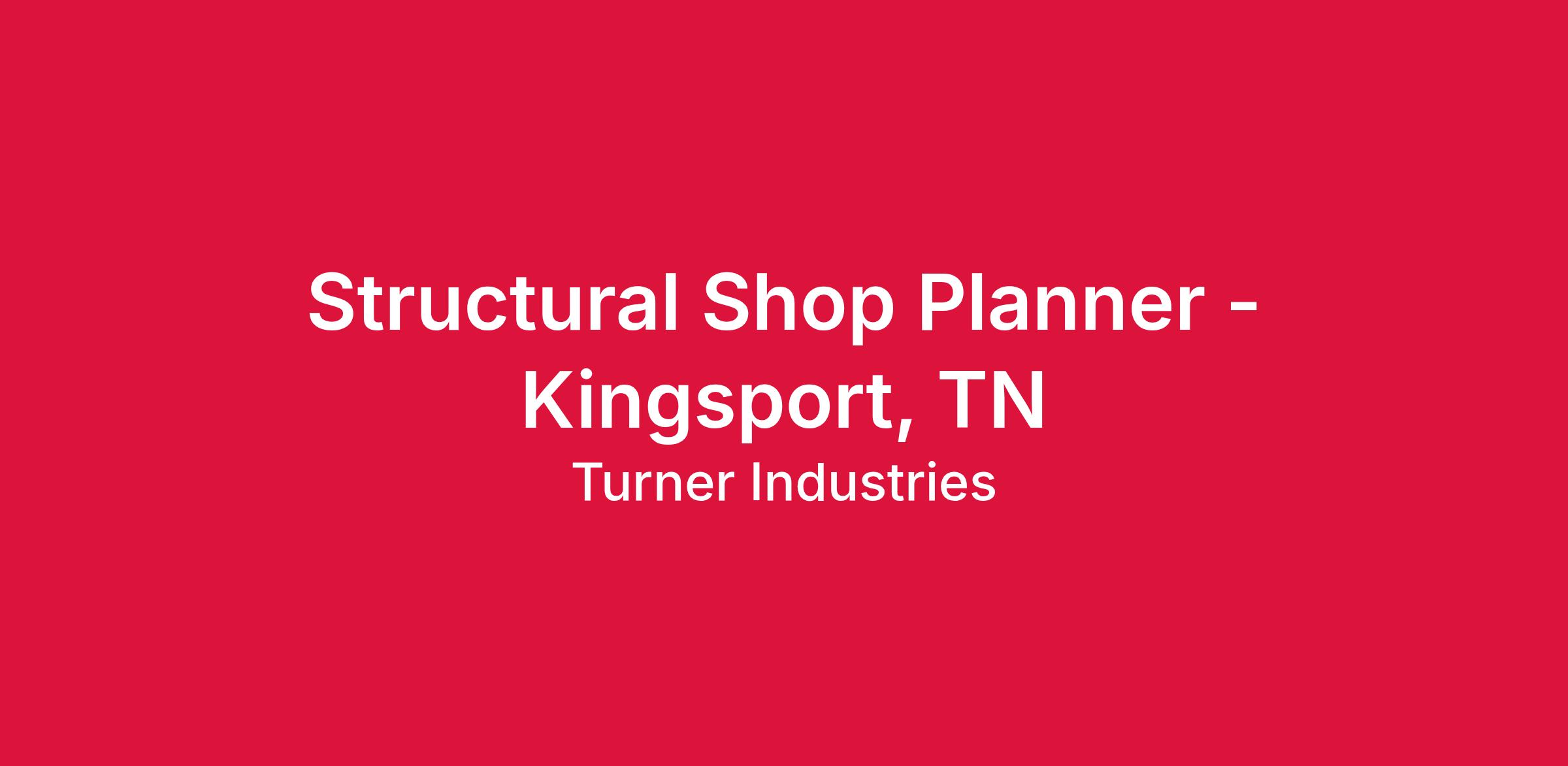 Turner Industries Group, LLC has an opening for a Structural Shop Planner to join our team in the Kingsport, TN area. The Planner position prepares complete estimates for assigned project(s) and determines project plans and specifications. Non-exempt role; Reports to Planning Supervisor or Foreman; Performs a variety of routine duties within established policies.