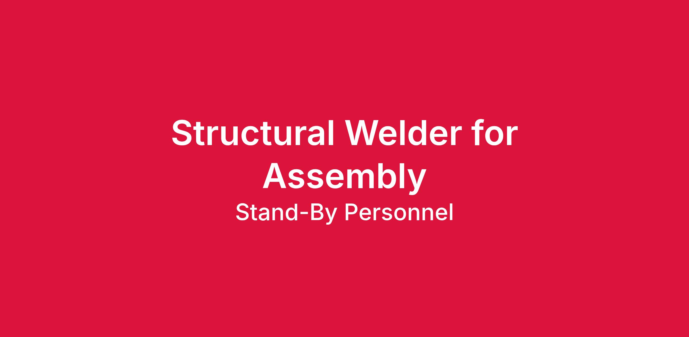 This is a strong opportunity for skilled professionals seeking consistent hours and long-term potential in a Structural Welder for Assembly role.