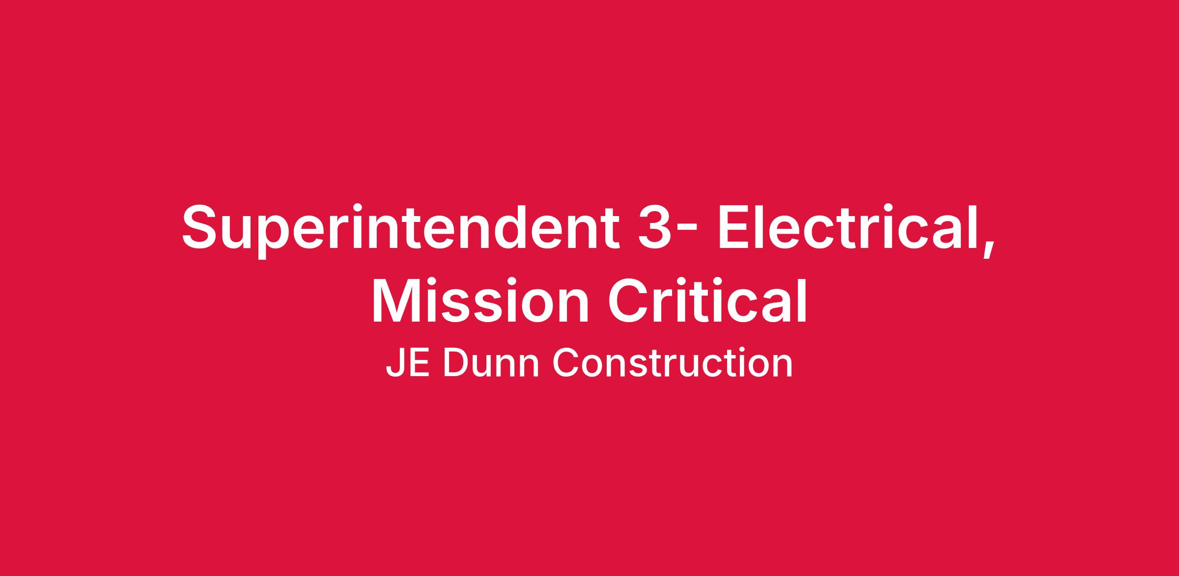 The Superintendent 3 will plan, manage and execute on all aspects of assigned projects with moderate complexity. This position will be responsible for managing the team, planning all construction sequencing and meeting project goals to achieve timely and profitable completion of each project. All activities will be performed in support of the strategy, vision and values of JE Dunn.