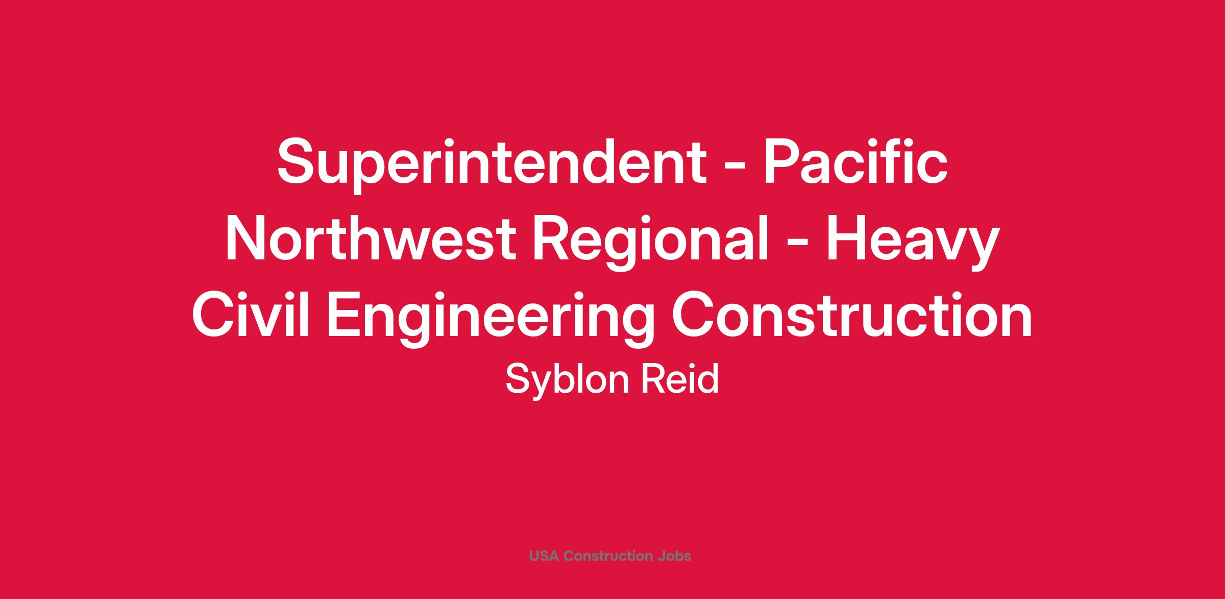 The Pacific Northwest Regional Superintendent will plan, coordinate, and supervise all Syblon Reid operations throughout, but not limited to, the States of Idaho, Washington, Oregon and Montana. This position will provide technical direction and have responsibility for the safety, costs, productivity, profitability, and overall quality of the work for the projects. The Pacific Northwest (PNW) Regional Superintendent will establish productivity goals and measure performance as well assisting field Foreman with scheduling of labor, materials and equipment. This position may require supervision of multiple field foreman/superintendents depending on the needs of the company. The ideal candidate would have 10-15 yearsβ of field experience with capability of managing projects up to $25 million and flexibility to travel where needed within the Pacific Northwest.