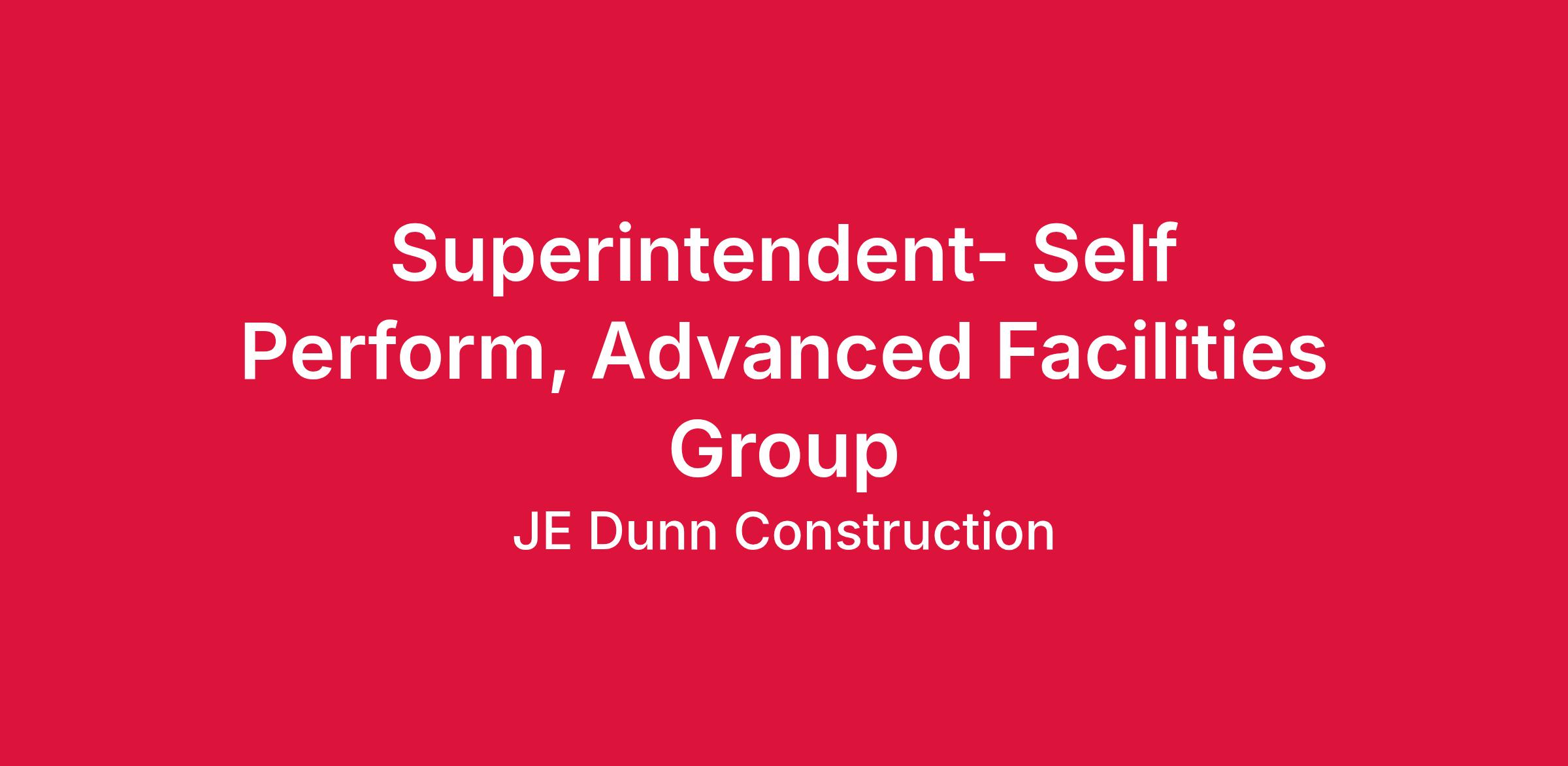 The Superintendent will help plan, manage and execute all aspects of assigned projects. This position will be responsible for managing material and equipment, assisting with people management, ensuring documentation is complete and meeting project goals to achieve timely and profitable completion of each project. All activities will be performed in support of the strategy, vision and values of JE Dunn.