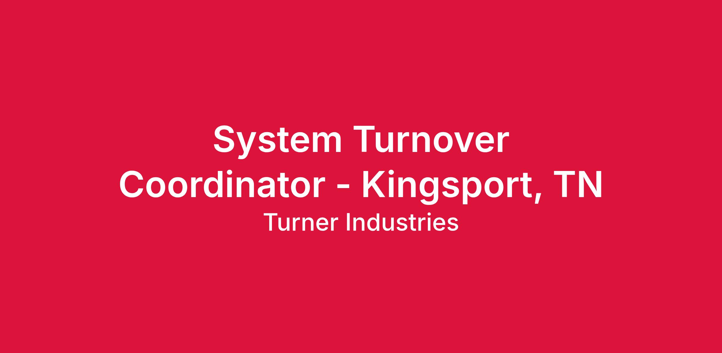 We are seeking a System Turnover Coordinator for a turnaround position in Kingsport, TN.