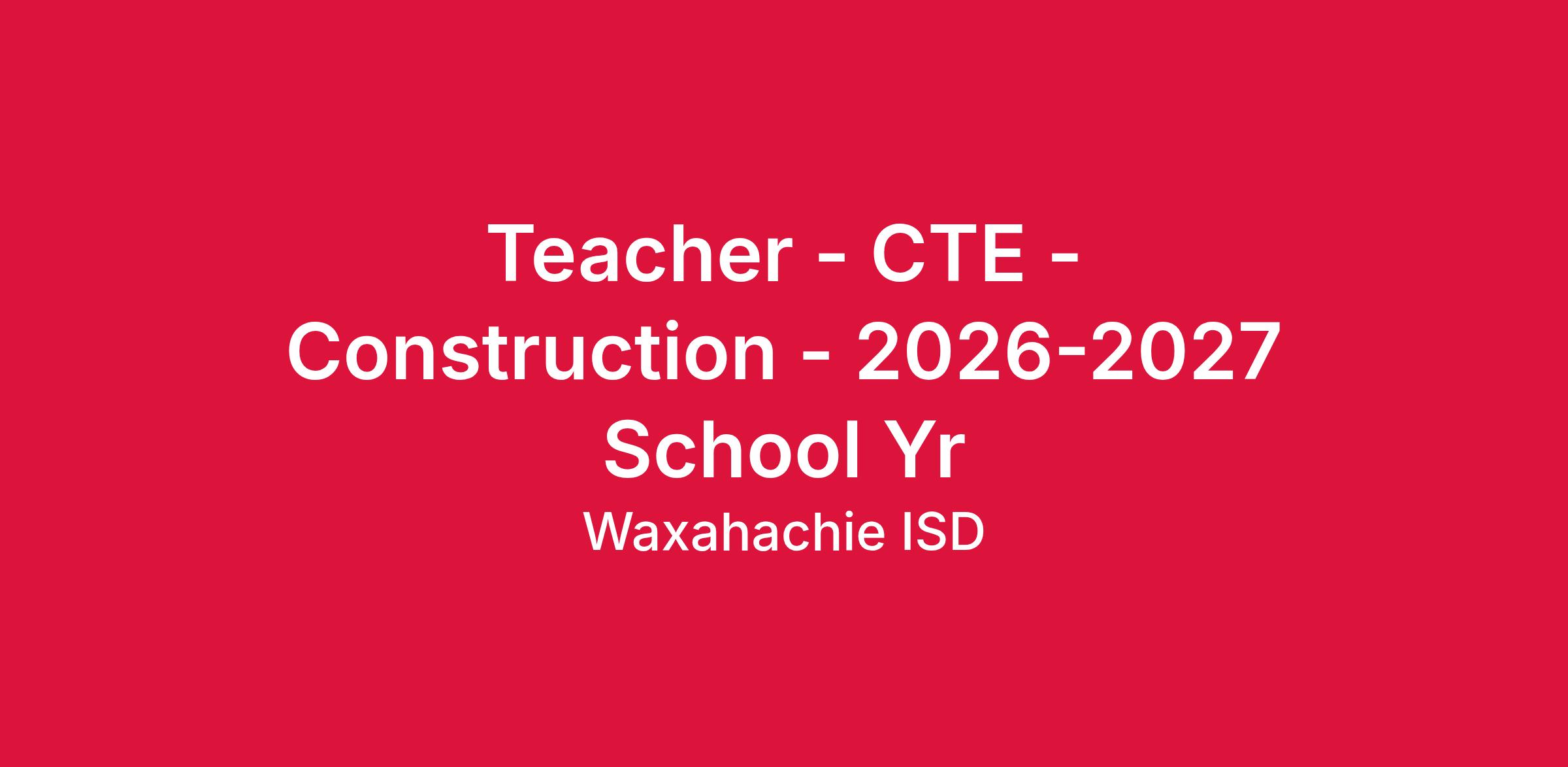 Job Description: Teacher – CTE