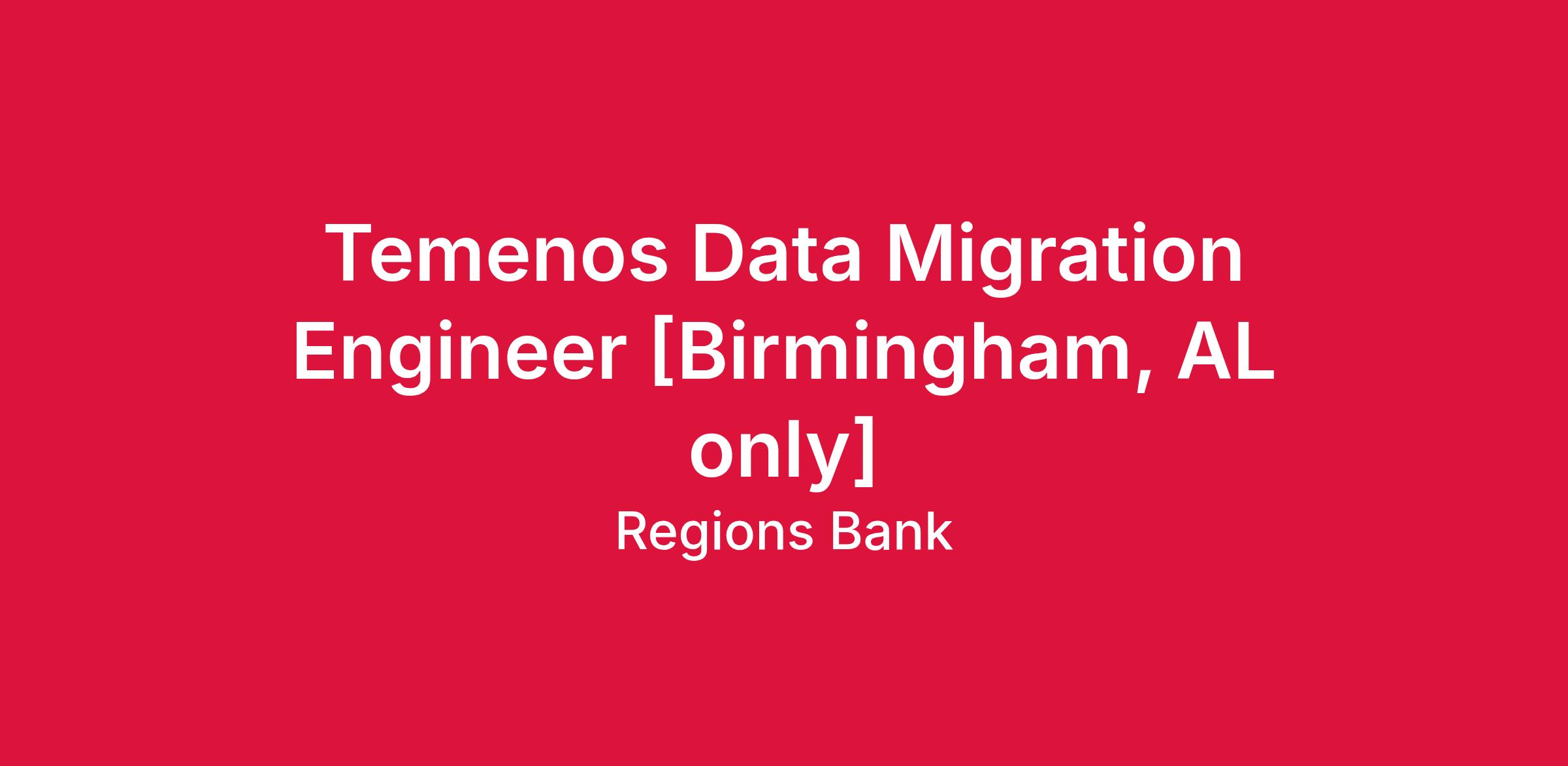 This position is intended to be onsite, now or in the near future. Associates will have regular work hours, including full days in the office three or more days a week. The manager will set the work schedule for this position, including in-office expectations. Regions will not provide relocation assistance for this position, and relocation would be at your expense. The location available for this role is Birmingham, AL,
