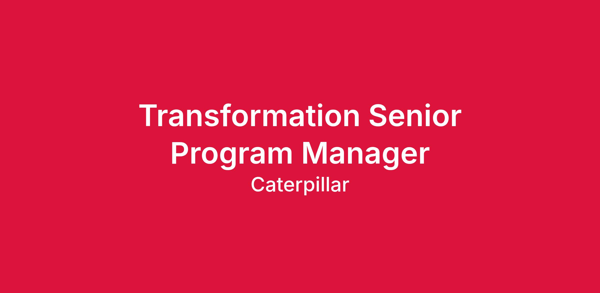 Caterpillar’s Electric Power Division has an exciting opportunity as a Transformation Senior Program Manager. The Senior Program Manager will lead multiple initiatives to transform the Large Electric Power Solutions businesses. These initiatives will be complex and large with a focus on efficiency gains.