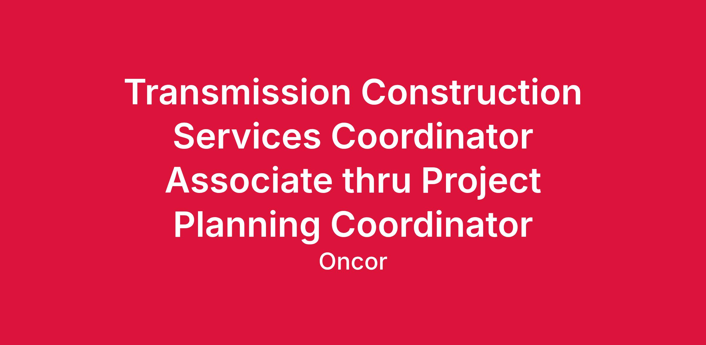 - Under the direct supervision of the Transmission Construction Services Manager, the Construction Services Coordinator will review projects that Transmission Planning, Scoping, Transmission Program Management Office (TPMO), and Engineering have planned and proposed.