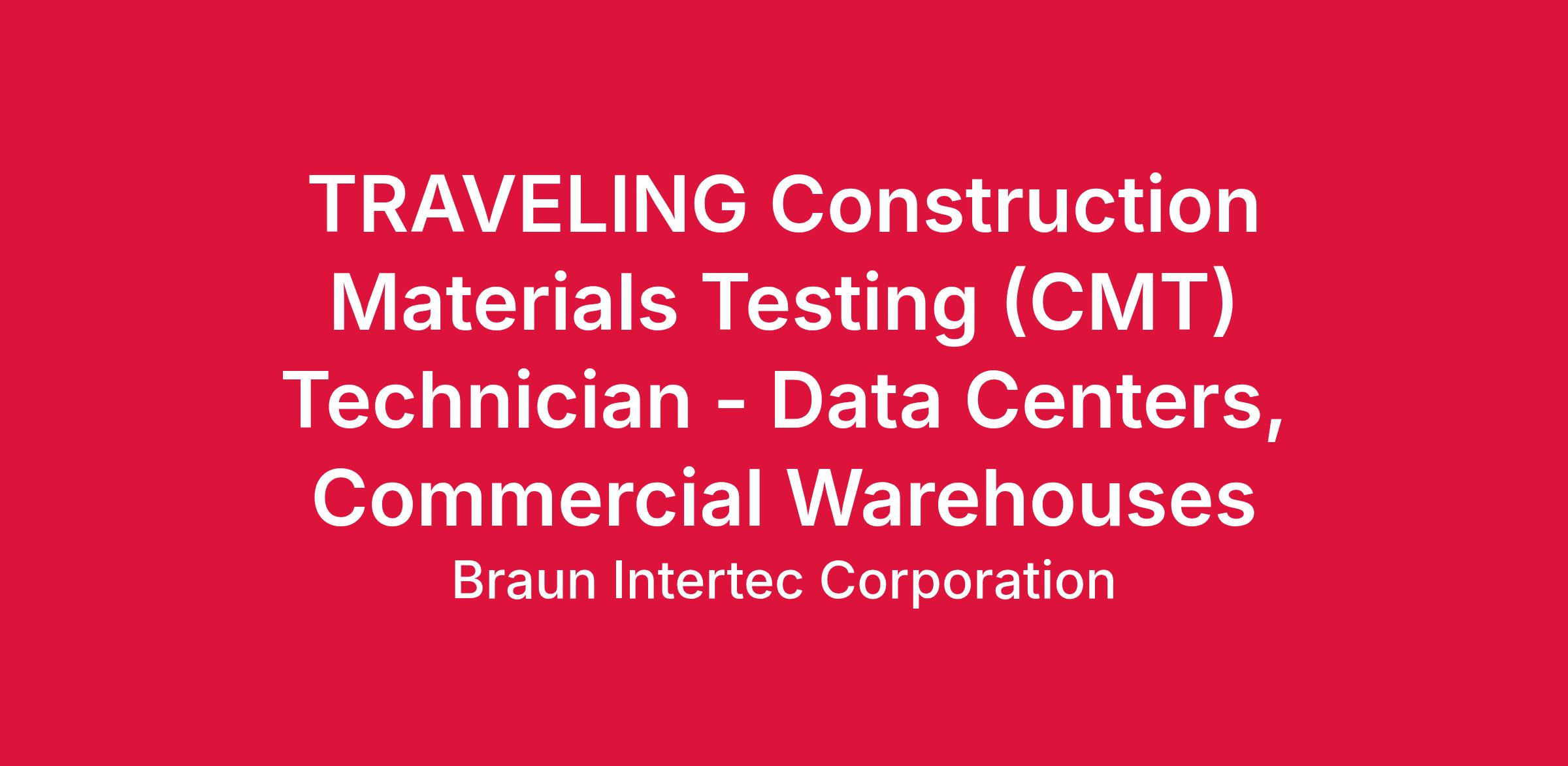 Braun Intertec is seeking experienced Construction Materials Technicians to join our team. This is a traveling position working on Data Centers, Commercial Warehouses and other remote projects.