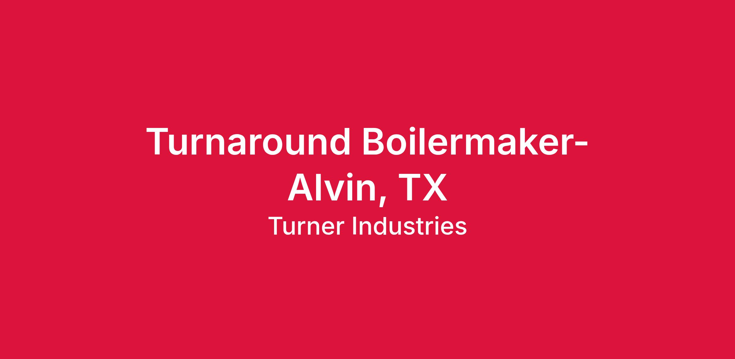 Turner Industries is seeking Journeyman Boilermakers for Turnaround work in Alvin, TX.
