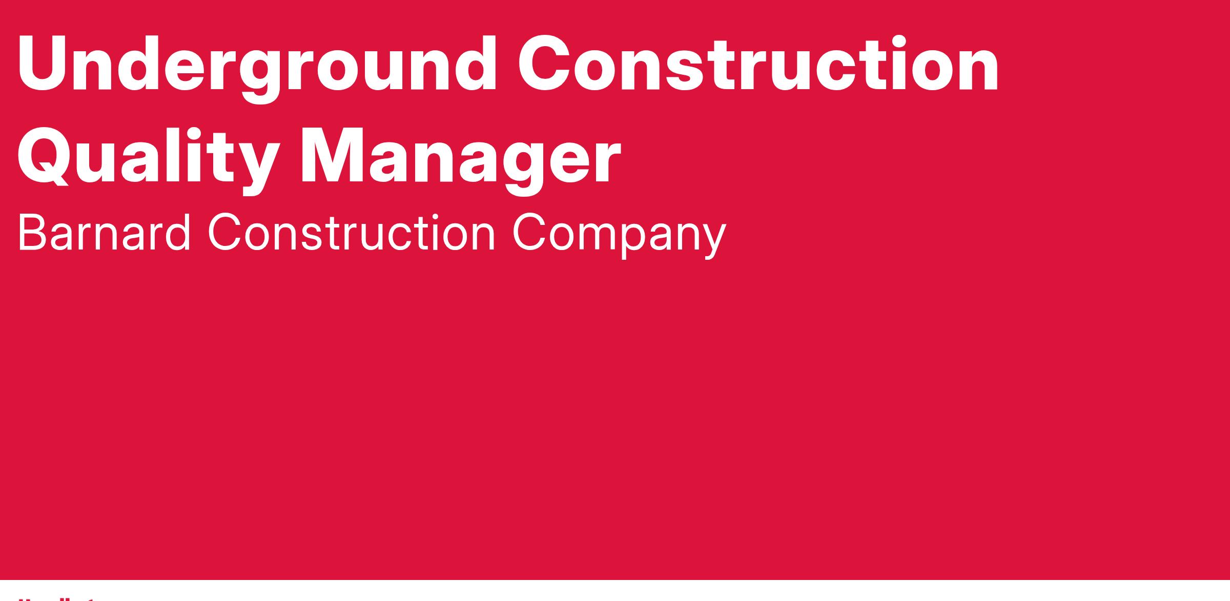 Barnard Construction Company, Inc. is seeking a Quality & Environmental Manager. The ideal candidate will have at least seven years of quality and environmental experience including operating ISO 9001 and ISO 14001 compliant management systems. Work will be to maintain and improve quality and environmental systems to ensure compliance.