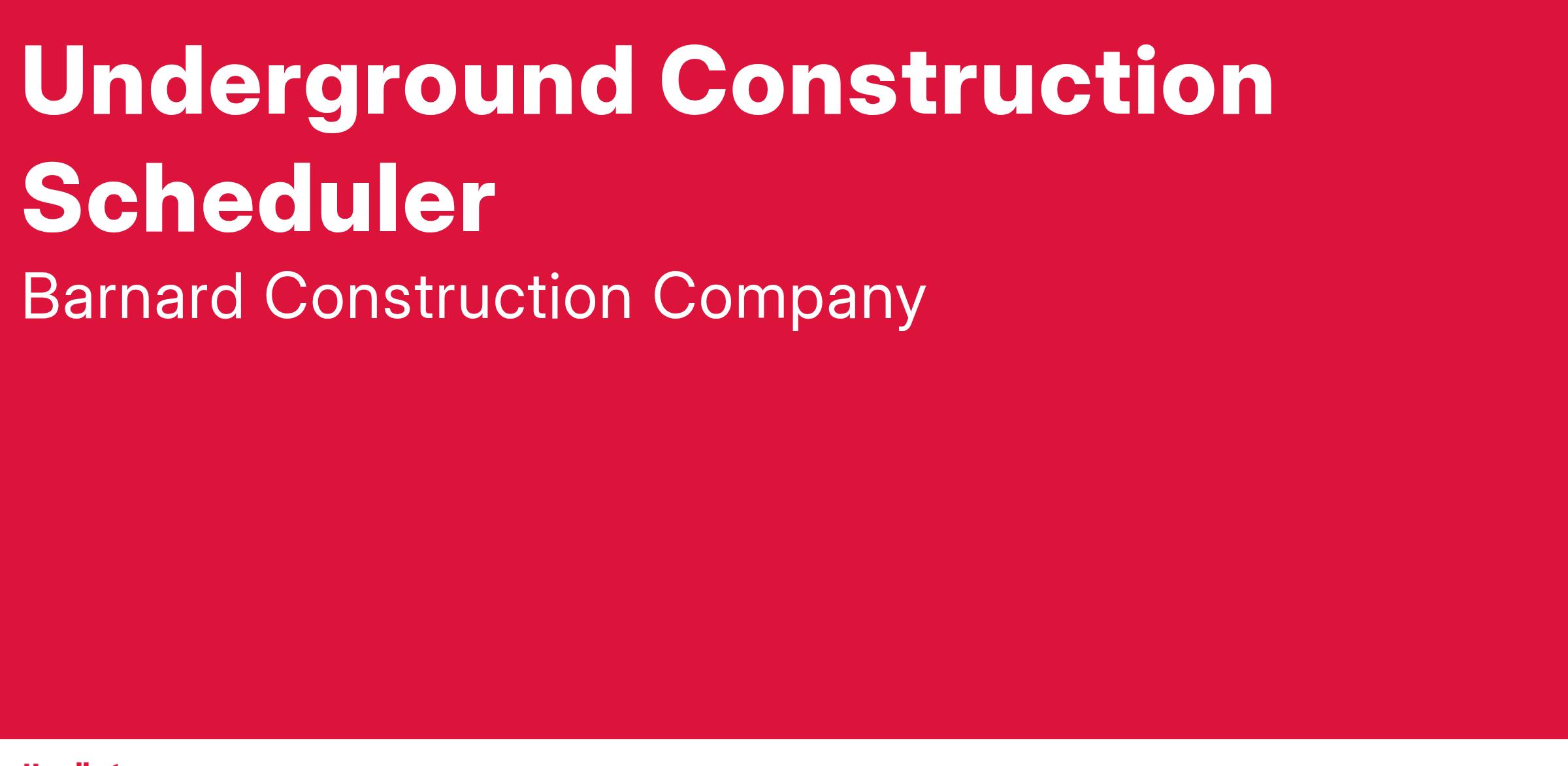 Barnard Construction Company, Inc. is seeking an experienced Senior Scheduler with demonstrated success in underground construction. The incumbent will be responsible for the development and progressing of underground and tunnel construction project schedules for project estimates, projects in development, and active projects in the field.