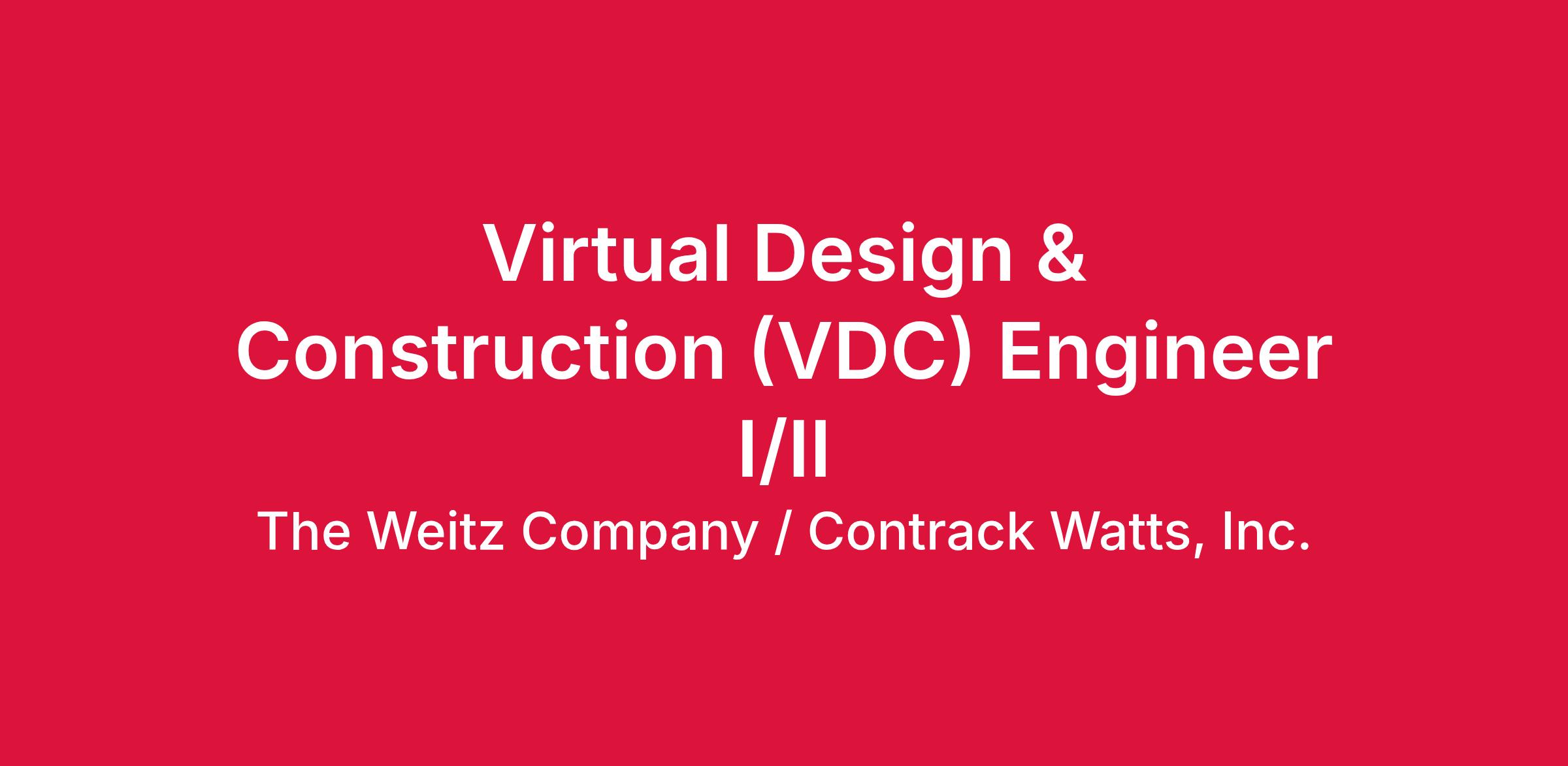 The Weitz Company is hiring a VDC Engineer to join our Industrial team! This role will be responsible for various functions on a construction project related to the design, management, and implementation of VDC systems including modeling and photography technologies. This exciting role streamlines workflows amongst project teams and enhances VDC utilization on assigned project(s).