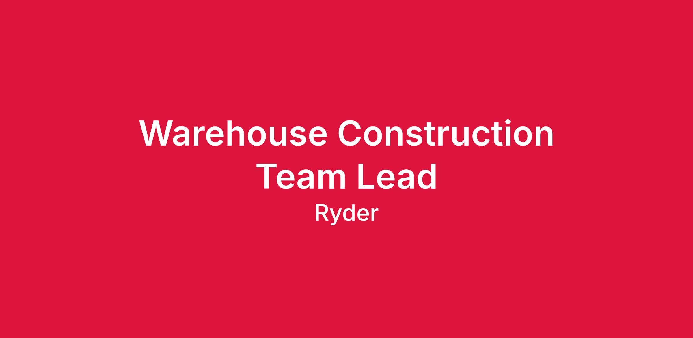 Ryder is immediately hiring a Warehouse Team Lead in Fort Worth, Texas