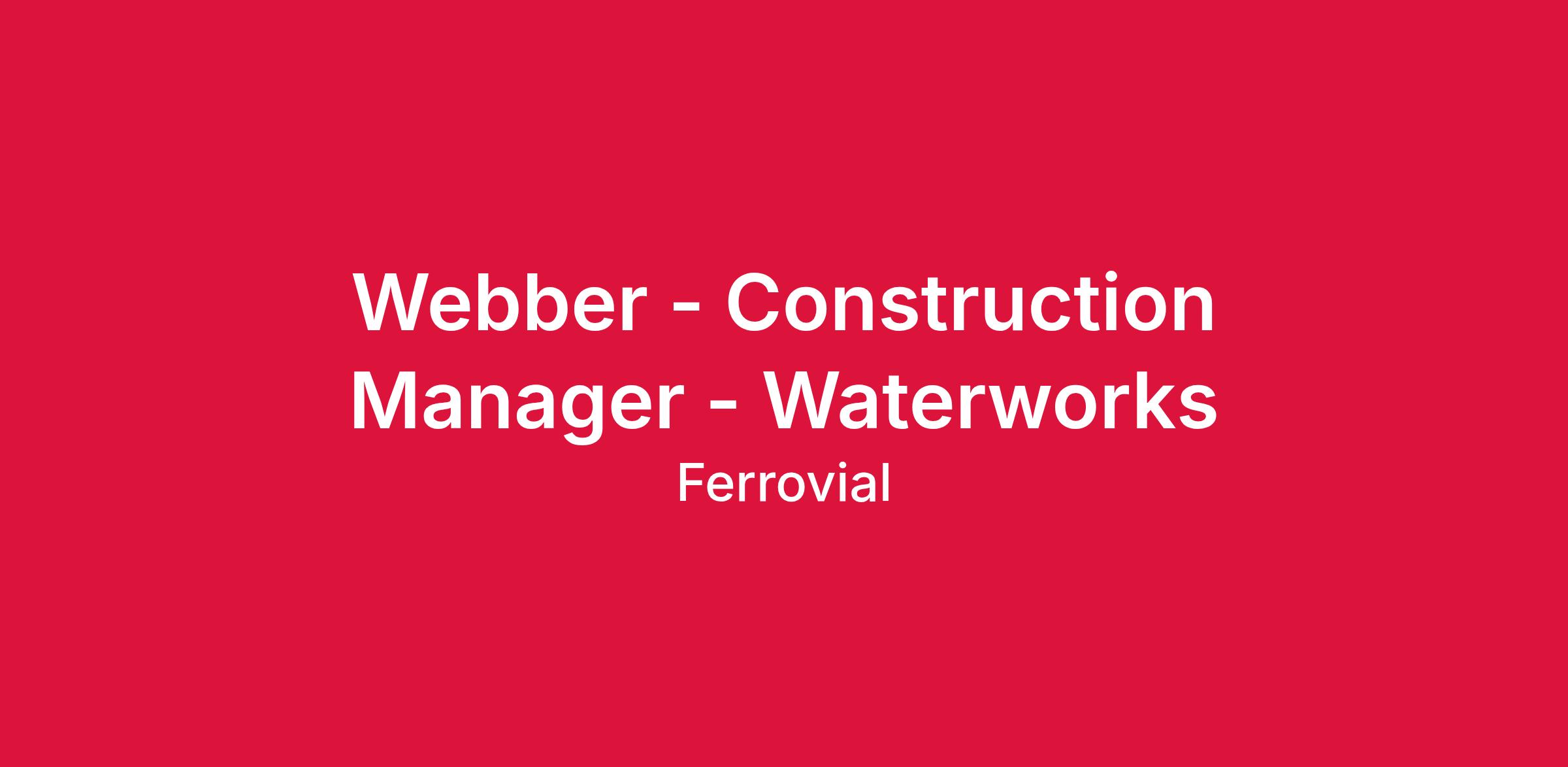 Founded in 1963, Webber, part of Ferrovial Construction, is a leading construction company that specializes in heavy civil, waterworks, energy and infrastructure management and is dedicated to safely providing intelligent solutions to its clients and community. Webber is headquartered in Houston, Texas, with offices and projects in the United States and Canada. Webber supports a wide range of project models to meet client needs, including traditional design bid build, design build, alternative delivery models and public private partnership (P3) solutions. Webber also has an in-house engineering services department to help optimize building efficiency and quality while solving complex project challenges using field experience, innovative construction methods and BIM technology. As a subsidiary of Ferrovial, Webber has access to a global network of skilled engineers, best-in-class technology and vast resources.