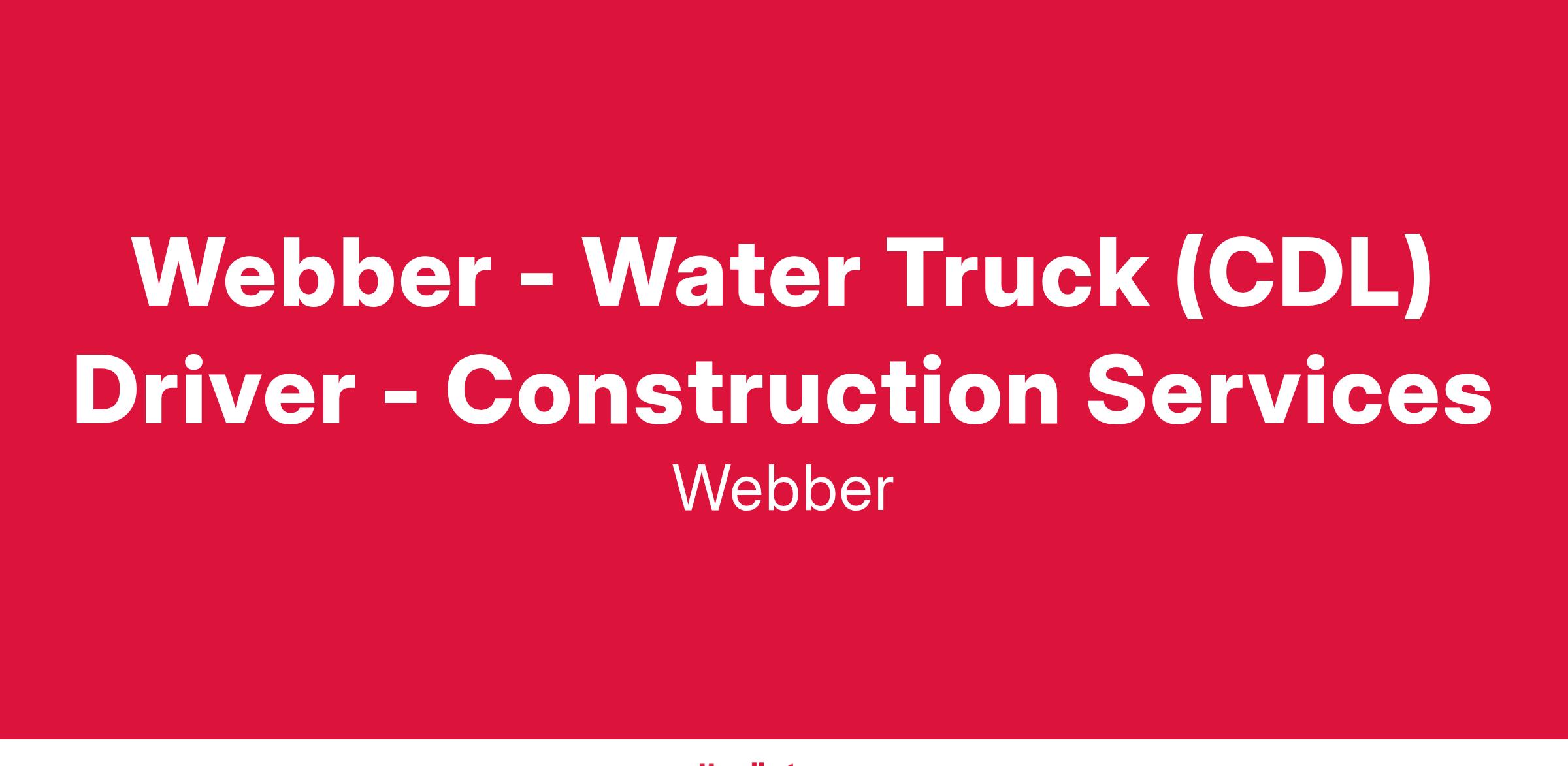 Webber - Water Truck (CDL) Driver - Construction Services
