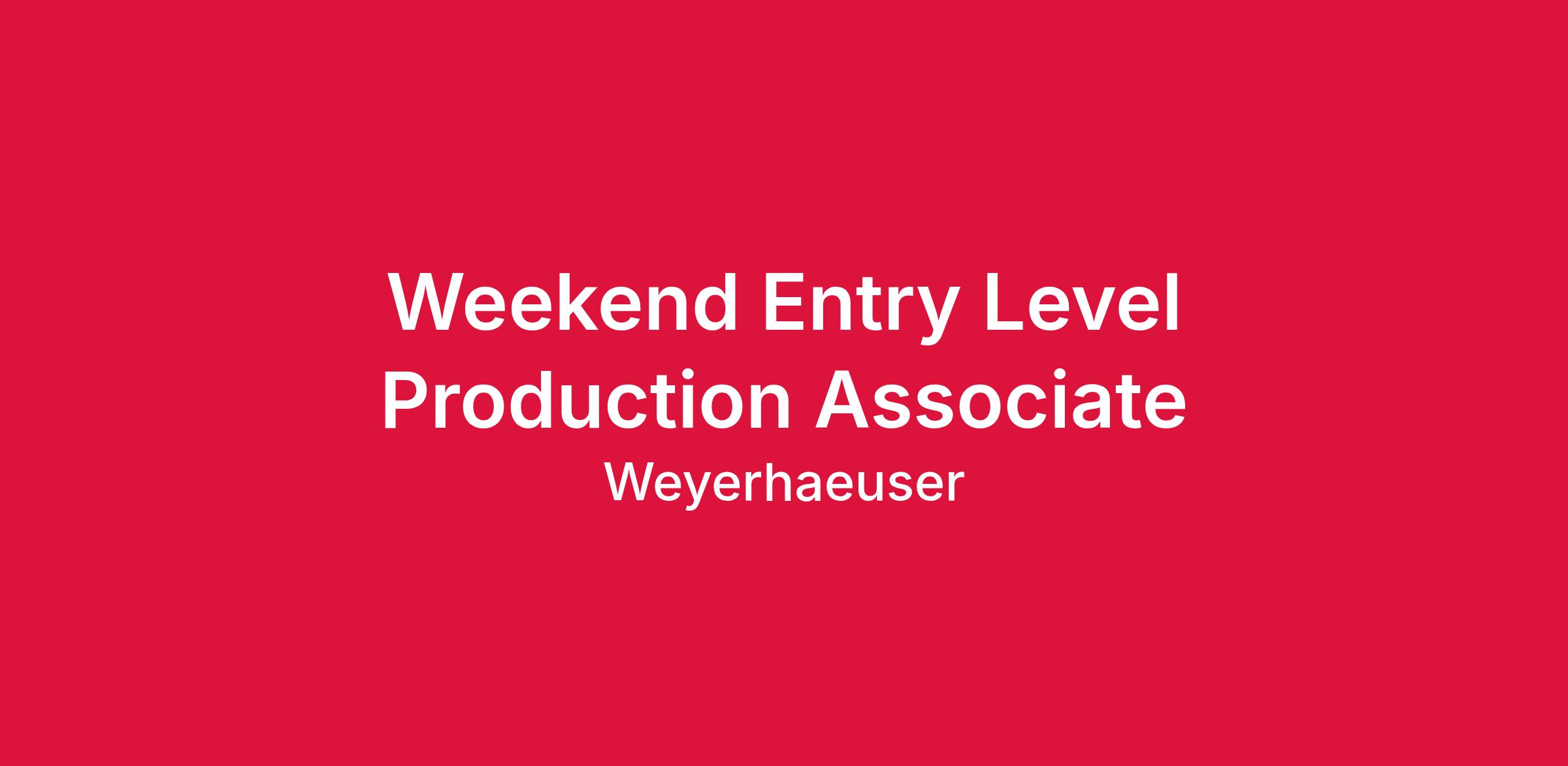 Weyerhaeuser Company is accepting applications for Weekend Entry Level Production team members for our Dierks, Arkansas Lumber facility. These positions will support our weekend shift operations that are scheduled for Friday through Sunday in addition to alternating swing shift working hours to meet production needs. These positions will support functions including but not limited to, fire watch duties, clean-up duties and machine center operations. We are seeking individuals who are committed to safety, have a positive attitude, excellent work ethic, and a desire to work in a manufacturing facility.